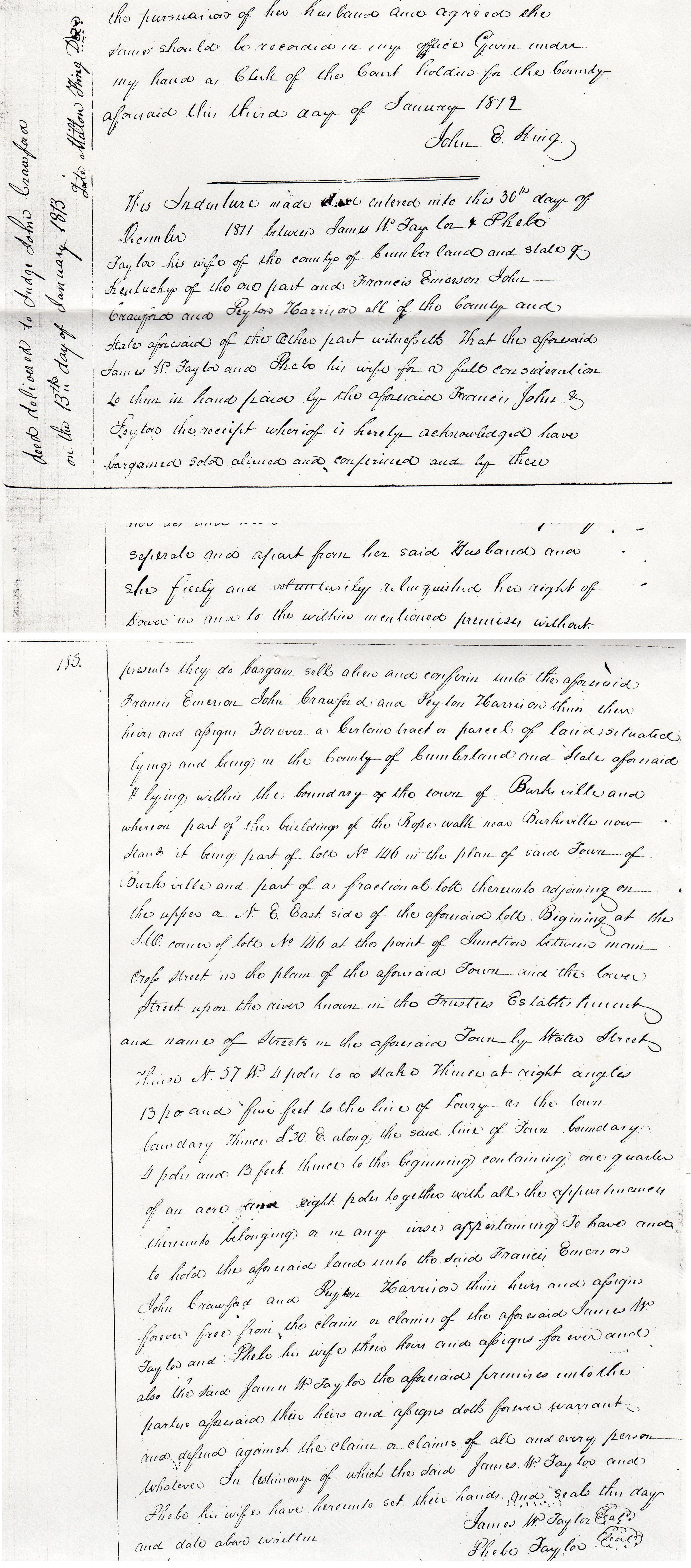 Peyton Harrison on Dec 30, 1811 from James W. Taylor and his wife [see below