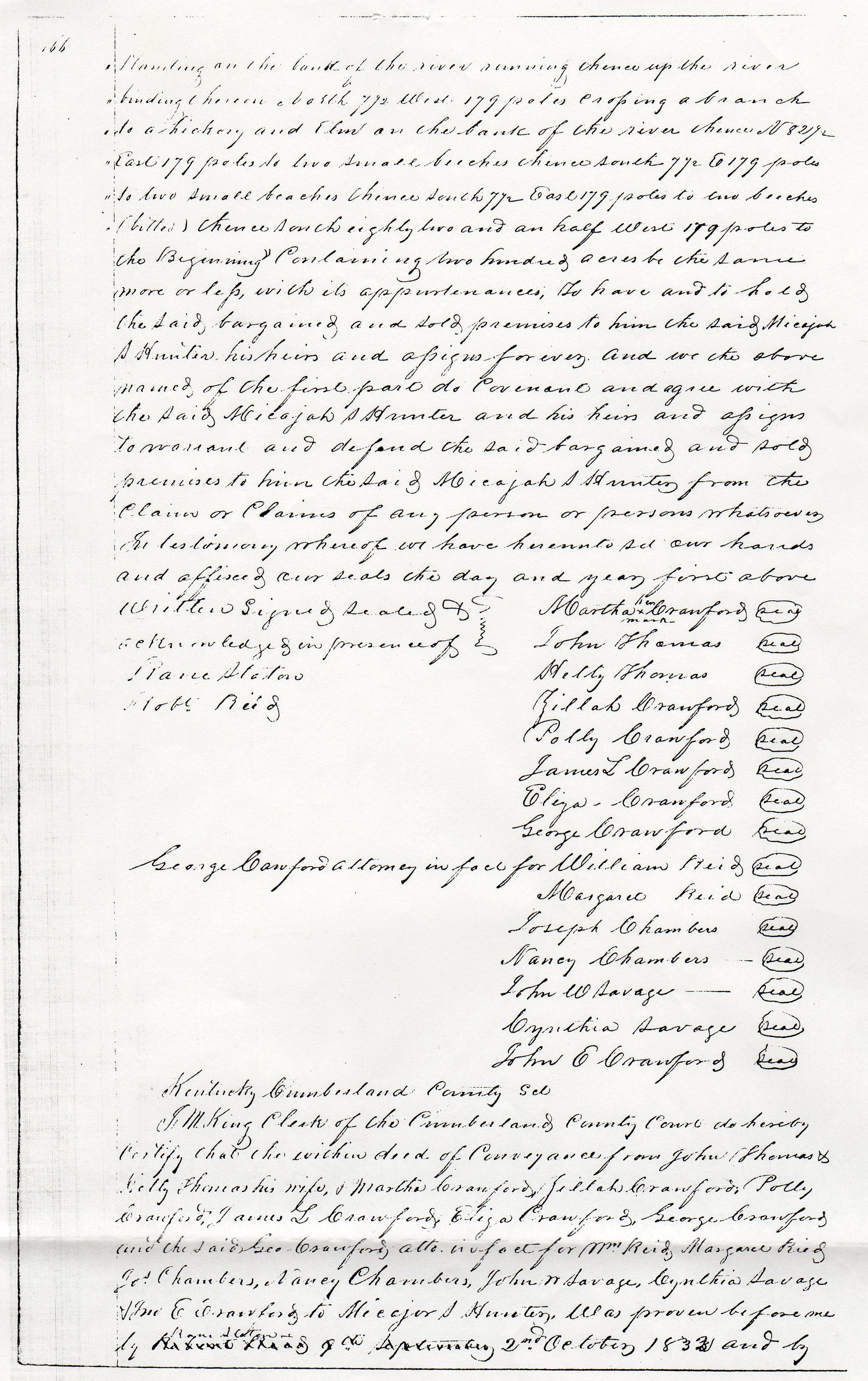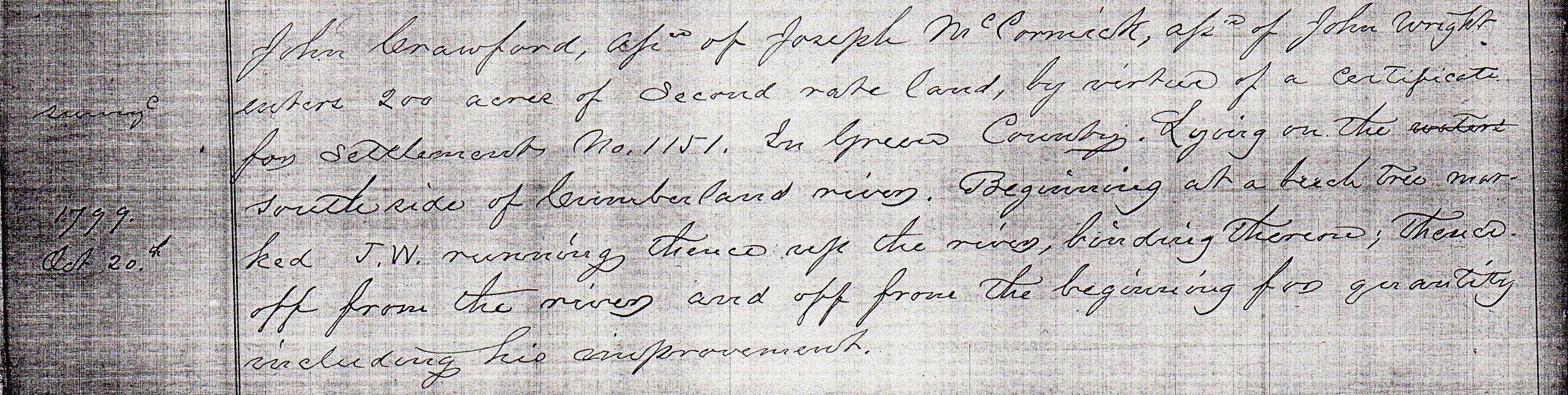 JOHN CRAWFORD's land in Cumberland County, Kentucky