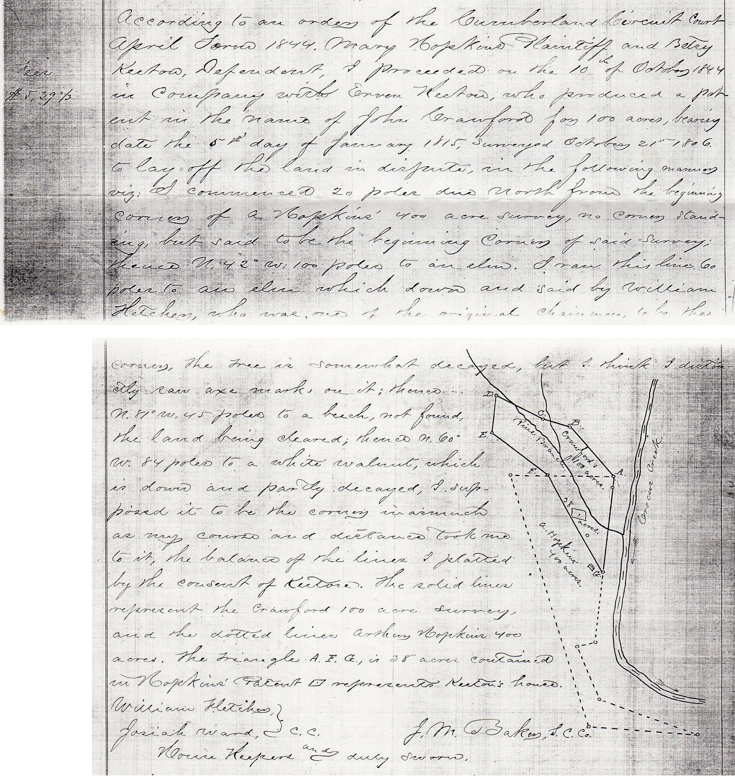 Map showing the location of JOHN CRAWFORD's land in Cumberland Co., Kentucky